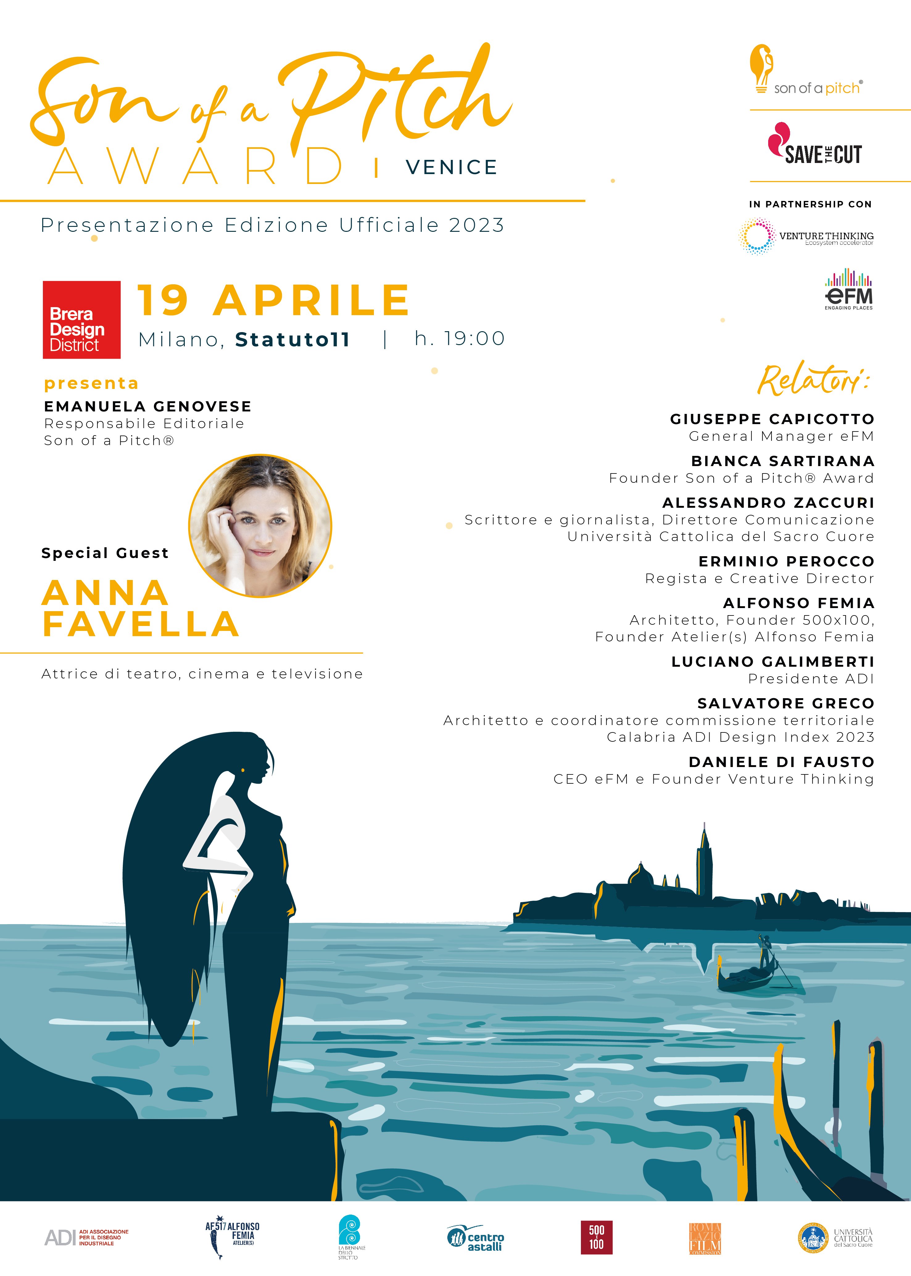 - Il secondo appuntamento si terrà il 19 aprile 2023, dalle ore 19:00. eFM sarà teatro della presentazione della terza edizione di SON OF A PITCH© AWARD, il premio cinematografico per registi under 30, lanciato da Save The Cut e Son of a Pitch, che si terrà al Lido di Venezia, durante la Mostra Internazionale d'arte cinematografica.