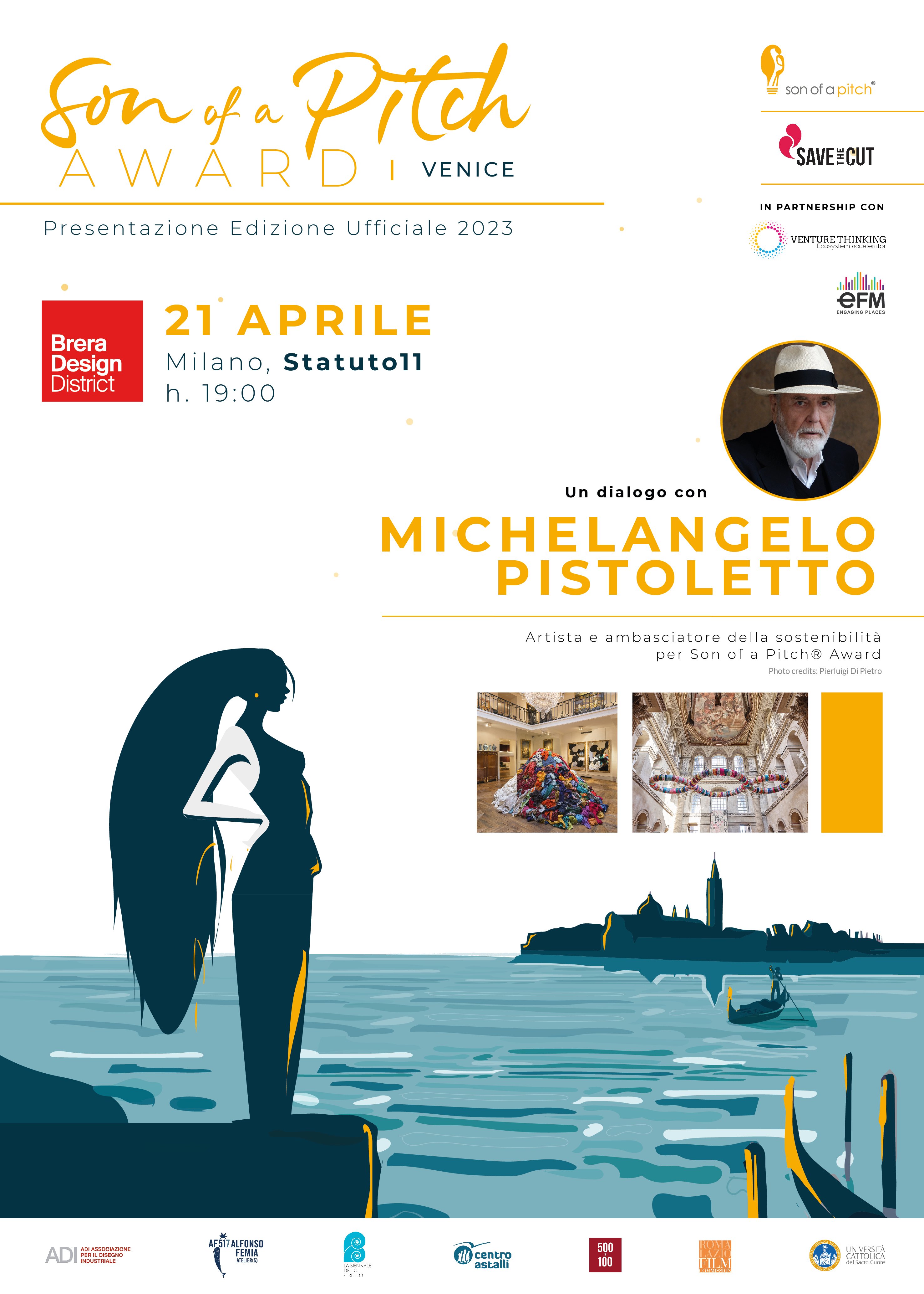- Il terzo appuntamento si terrà venerdì 21 aprile 2023, con il lancio ufficiale del contest internazionale di Son of a Pitch Award, e ospite d’onore Michelangelo Pistoletto, artista internazionale che ha fondato Cittadellarte a Biella e da anni realizza opere esposte in tutto il mondo. Scarica la locandina.